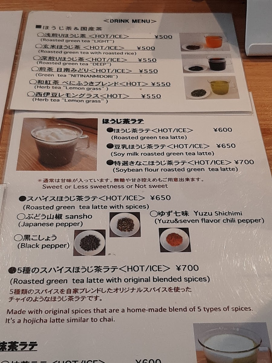 Upon entering, you are greeted by a cozy atmosphere that captures the essence of Kyoto's tranquil charm. Although seating is limited, this only adds to the intimate feel of the café, making it the perfect spot to unwind with a warm drink or a quick respite during your day exploring the city. The calming aesthetic is complemented by the inviting aroma of roasted tea wafting through the air, inviting you to take a moment for yourself.
